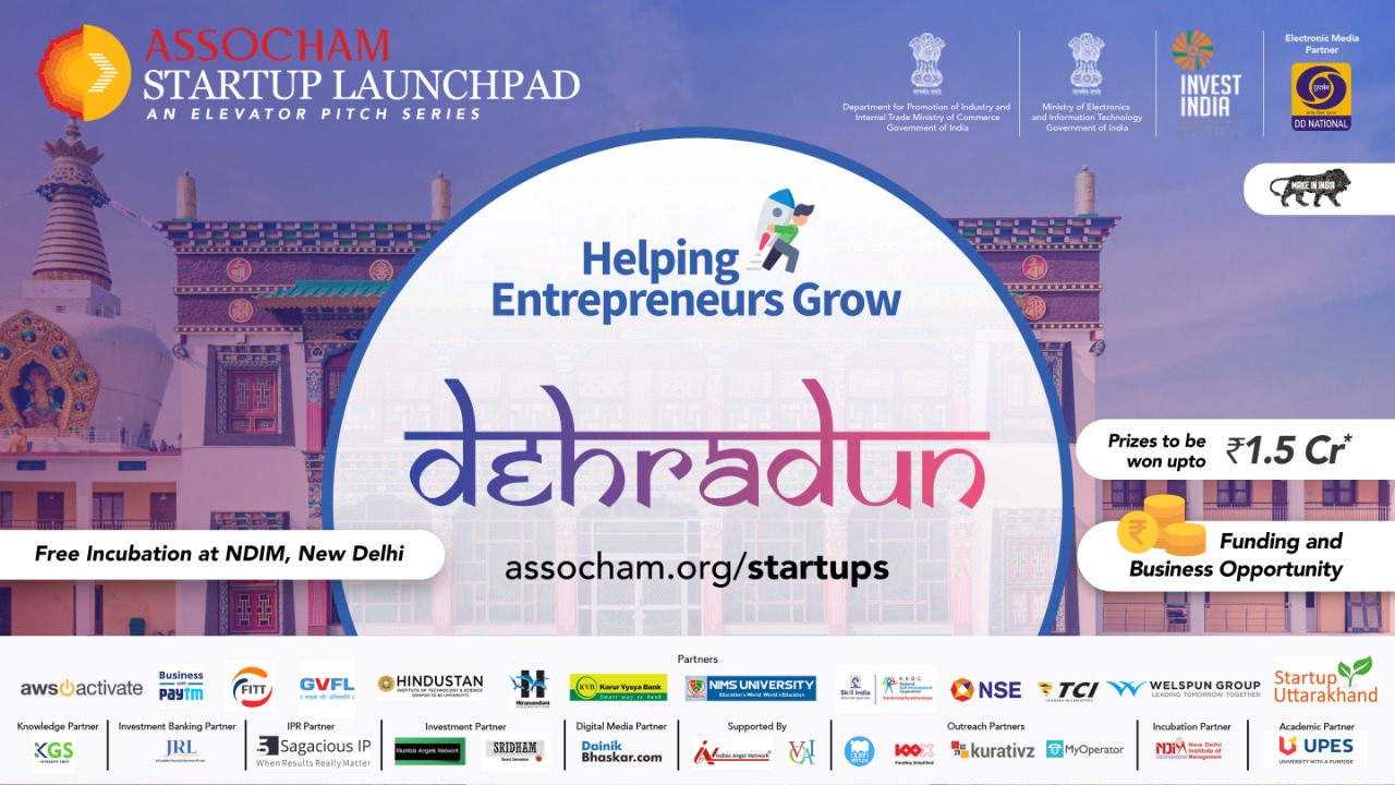 Assocham in partnership with DPIIT, Ministry of Information Technology and Doordarshan are putting together Elevator Pitch Sessions in 12 cities across India. One of this event is to be organised in Dehradun in association with UPES and Startup Uttarakhand at UPES Campus. The objective is to identify potential startups and connect them to renowned investors from the country. The finalist selected in session will have an opportunity to participate in Grand finale which will take place in Gujarat in the month of March.